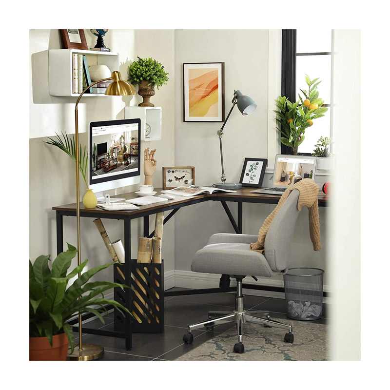 Το γωνιακό γραφείο σε σχήμα L, από την εταιρία VASAGLE, έχει βιομηχανικό σχεδιασμό σε σχήμα L και ταιριάζει σε κάθε γωνία για εξοικονόμηση χώρου. Διαθέτει σταθερό μεταλλικό πλαίσιο από ατσάλι και επιφάνεια από ξύλο μοριοσανίδας, με μέγιστο βάρος τα 50 Kg. Είναι αρκετά μεγάλο για να χωρέσει έναν υπολογιστή, εκτυπωτή, βιβλία, κ.α. Επίσης, έχει άφθονο χώρο για τα πόδια σας, μπορεί να χωρέσει εύκολα την καρέκλα από κάτω ή και ένα ντουλάπι αρχειοθέτησης, ενώ τα ρυθμιζόμενα πόδια του διευκολύνουν την αντιστάθμιση μικρών παρατυπιών στο πάτωμα και το προστατεύουν από γρατζουνιές και βαθουλώματα.