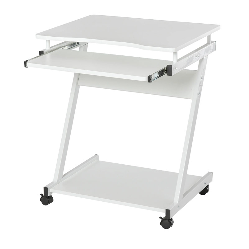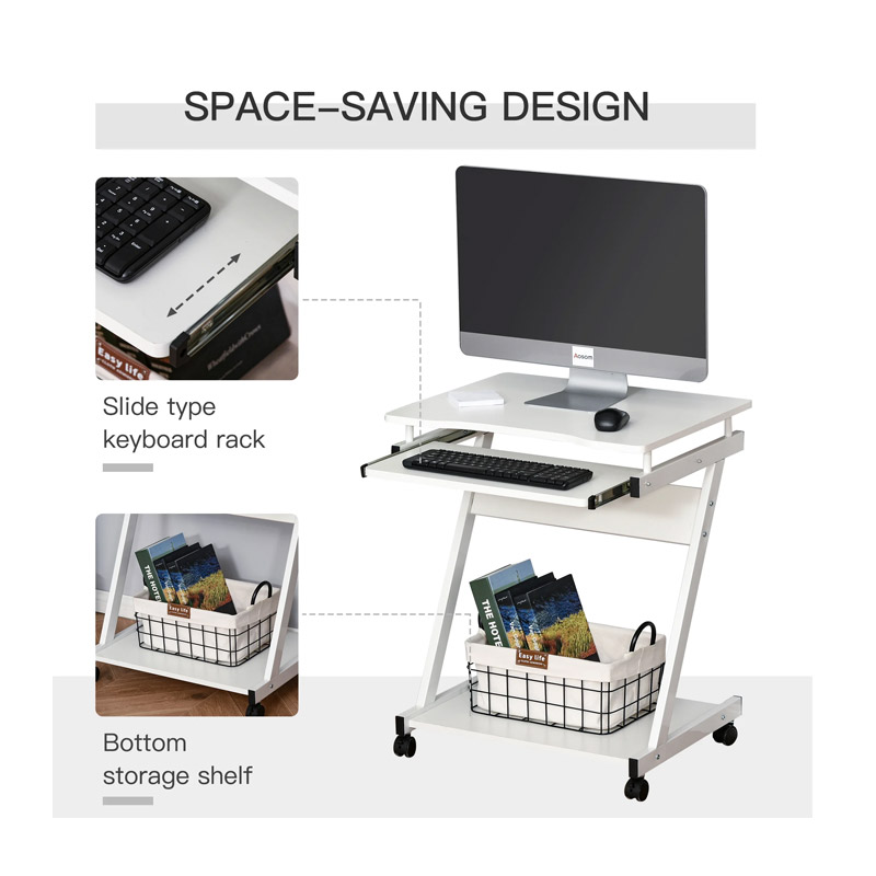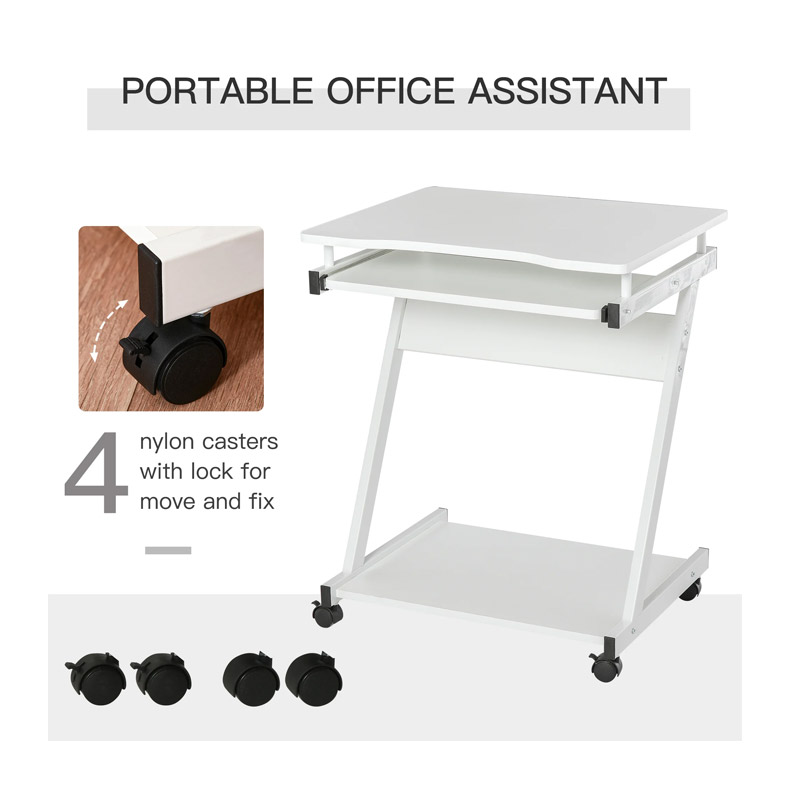 Τροχήλατο Μεταλλικό Γραφείο Υπολογιστή με Θέση για Πληκτρολόγιο 60 x 48 x 73 cm Χρώματος Λευκό HOMCOM 836-293WT