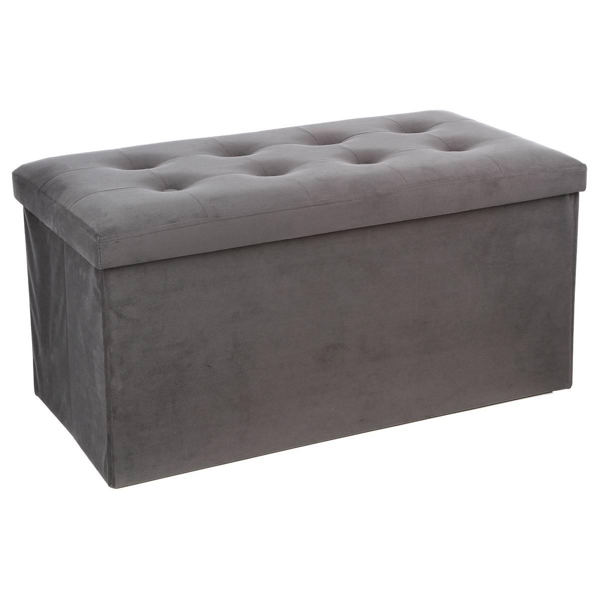 Atmosphera Γκρι Βελούδινο Παγκάκι με Αποθηκευτικό Χώρο και Μοντέρνο Σχεδιασμό 140091E