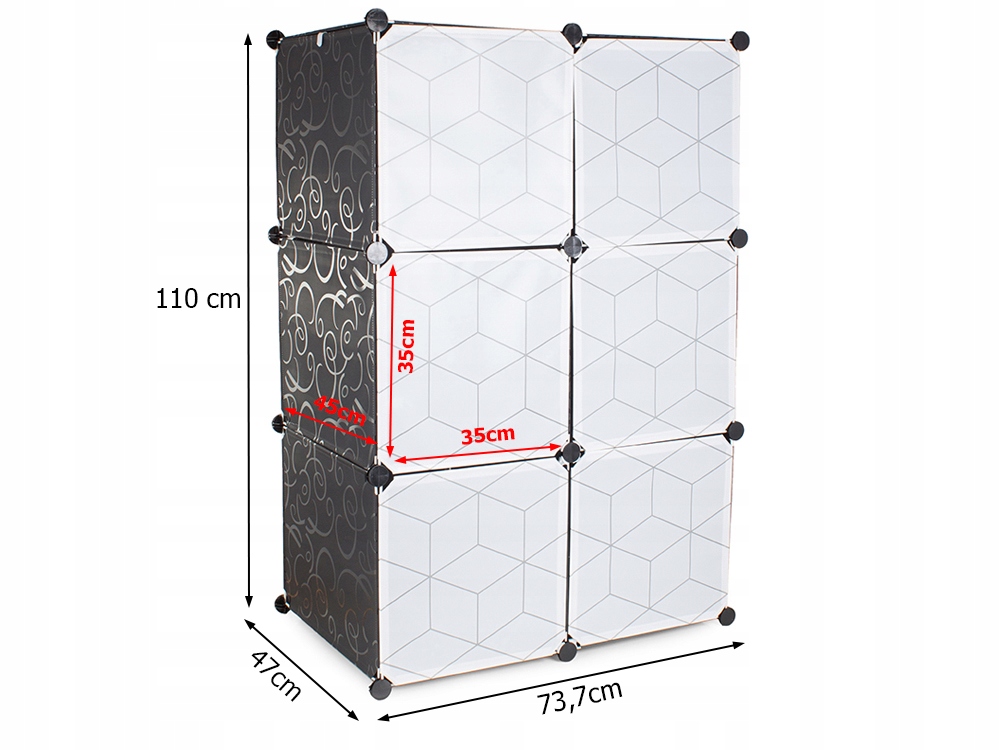 Η μοντέρνα ντουλάπα ταιριάζει απόλυτα σε οποιοδήποτε χώρο ντυσίματος ή διάδρομο, ενώ μπορεί να χρησιμοποιηθεί και σε εταιρεία ή γραφείο. Επιπλέον, το αισθητικά ευχάριστο σχέδιο με ιδιαίτερο μοτίβο προσαρμόζεται σε κάθε διακόσμηση. Διαθέτει 6 τμήματα που μπορούν να ενωθούν και να στοιβαχθούν ή να τοποθετηθούν δίπλα-δίπλα ανάλογα με τις ανάγκες σας και τον διαθέσιμο χώρο. Ένα τμήμα της ντουλάπας είναι σχεδιασμένο για κρεμαστά ρούχα με ειδική ράβδο ανάρτησης. Είναι ελαφριά και σταθερή.