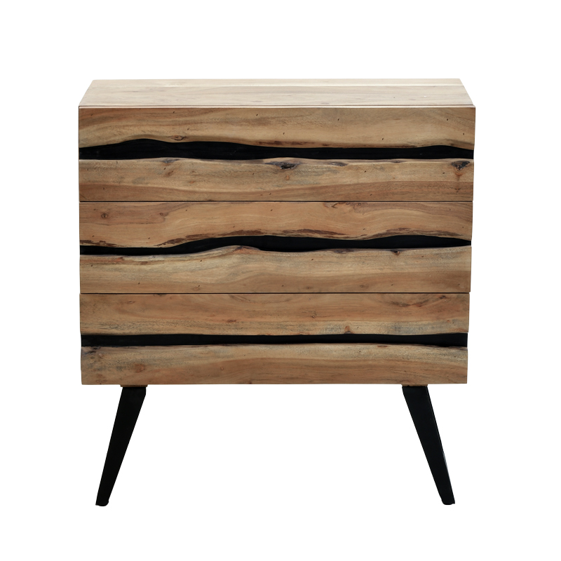 Συρταριέρα Imena pakoworld μασίφ ξύλο Acacia σε φυσικό απόχρωση με μαύρα μεταλλικά πόδια 80x38x86,5εκ