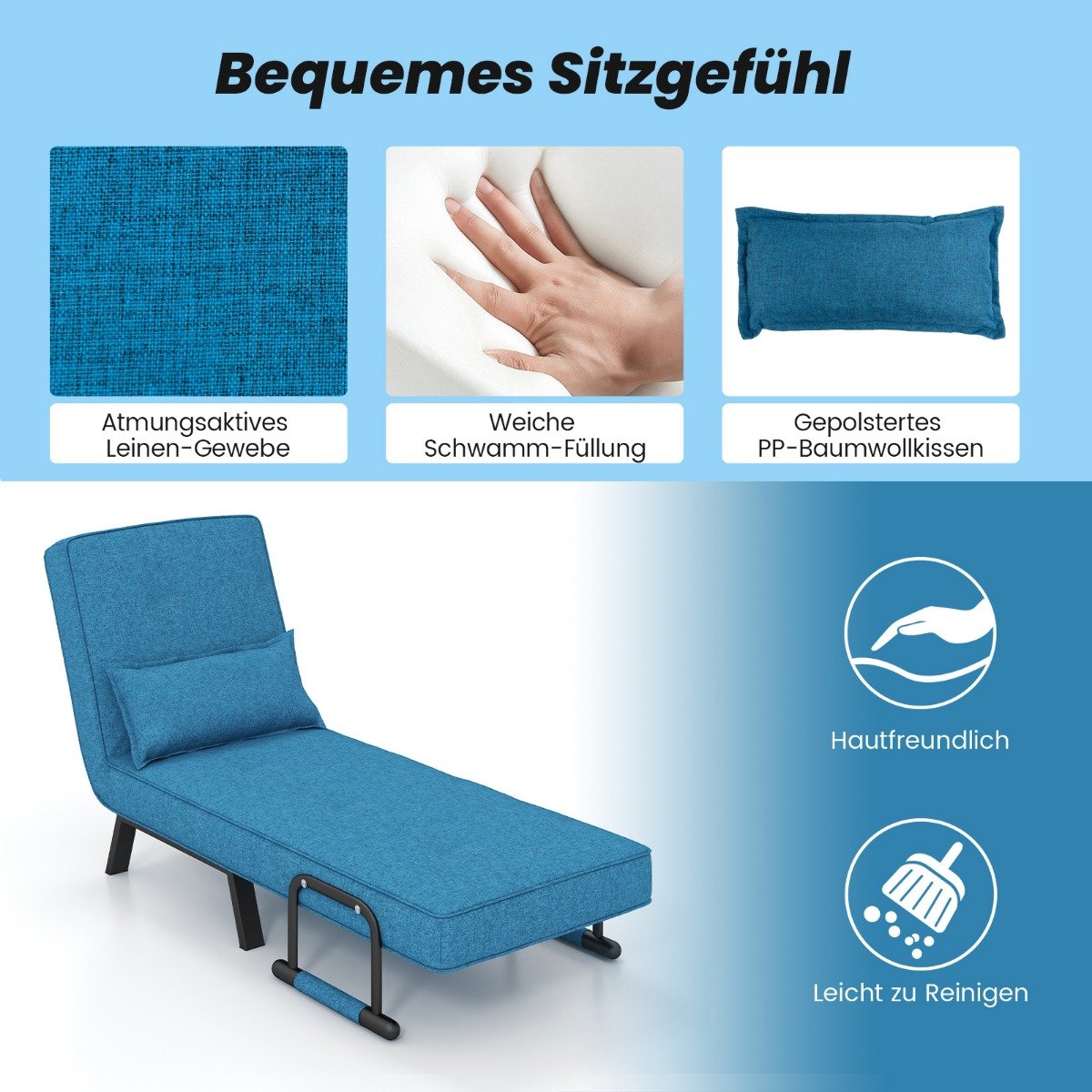 Costway Πολυλειτουργική Καρέκλα Ύπνου 4-σε-1 με Ρυθμιζόμενη Πλάτη και Μεταλλικά Πόδια 79 x 65 x 79cm Μπλε HV10417BL