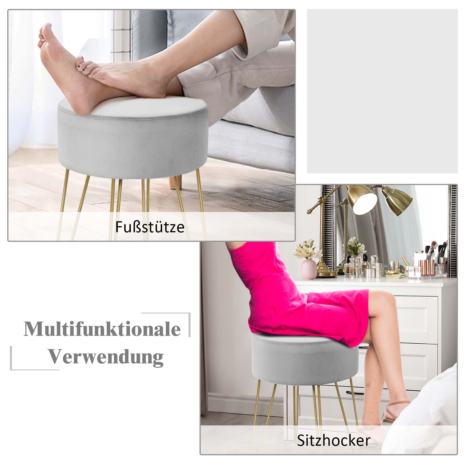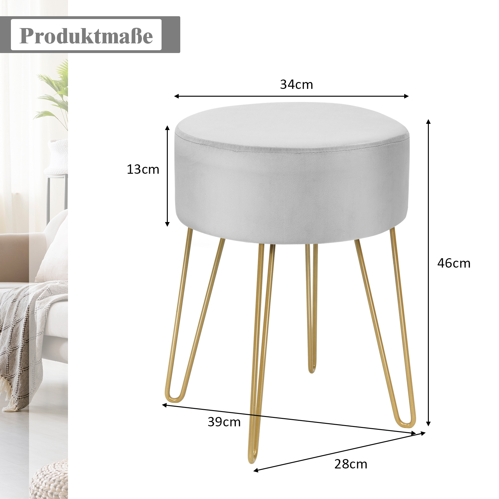 Costway Στρογγυλό Σκαμπό Βελούδινο με Μεταλλικά Πόδια σε Γκρι Χρώμα JV11342GR