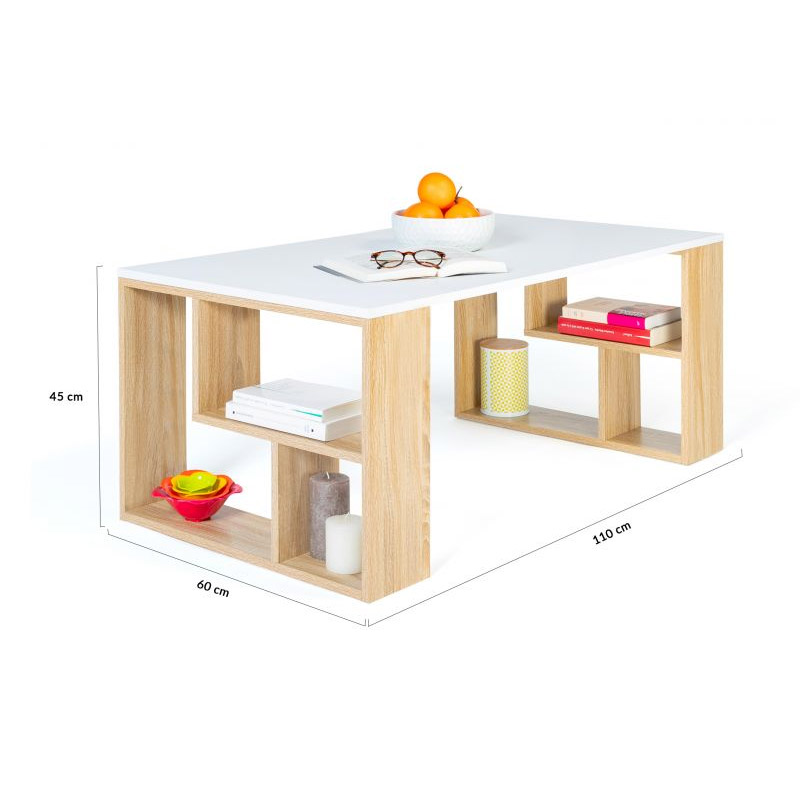 Το τραπέζι σαλονιού, από την εταιρία Idomya, θα φέρει μια πινελιά γοητείας στον εσωτερικό σας χώρο. Διαθέτει στιβαρή δομή από μοριοσανίδες μελαμίνης και ράφια στα πλαϊνά του μέρη.