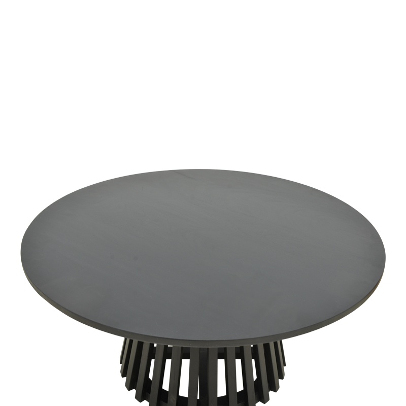 - Μοναδική Βάση "Ακτίνων": Το πραγματικό highlight αυτού του τραπεζιού είναι η κωνική του βάση, σχηματισμένη από κάθετες ξύλινες "πλευρές" ή "ακτίνες". Αυτό το ιδιαίτερο μοτίβο δημιουργεί ένα παιχνίδι φωτός και σκιάς, προσθέτοντας βάθος, υφή και μια μοντέρνα, αρχιτεκτονική πινελιά που το κάνει να ξεχωρίζει από οτιδήποτε άλλο.