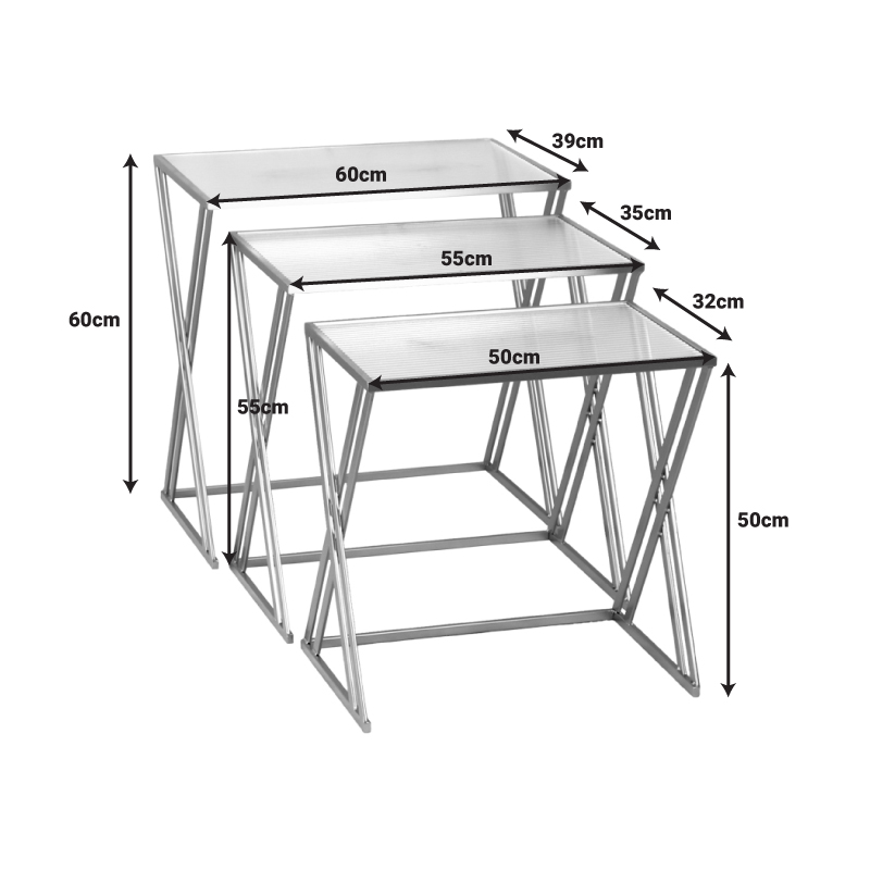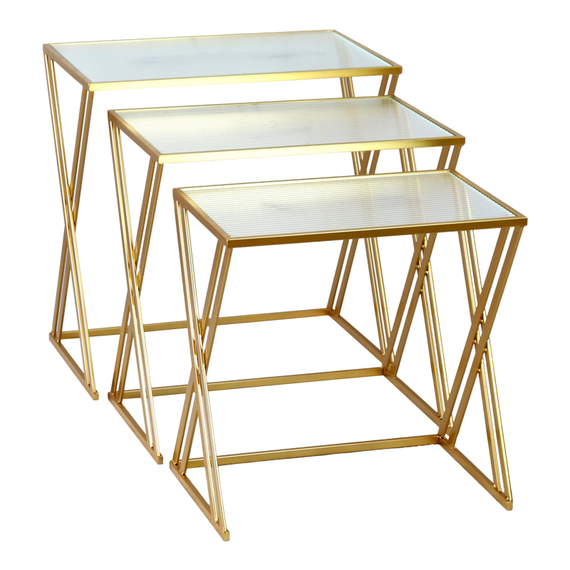 Τραπέζια σαλονιού σετ 3τεμ Pitche Inart χρυσό μέταλλο-γυαλί