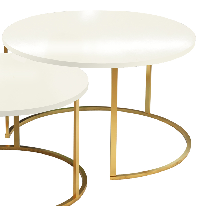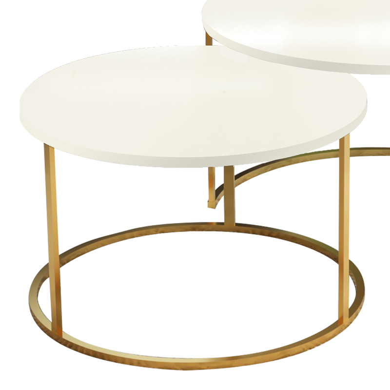 Τραπέζια σαλονιού Solme pakoworld σετ 2τεμ κρεμ μελαμίνης-χρυσό μέταλλο