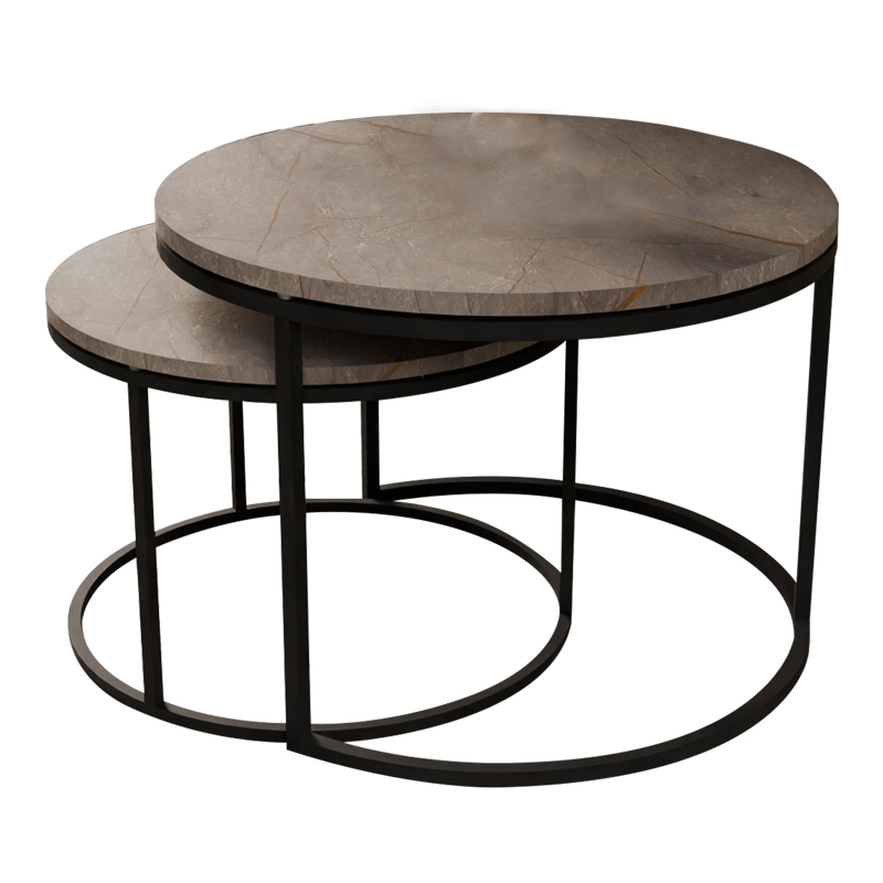 Τραπέζια σαλονιού Solme pakoworld σετ 2τεμ γκρι μαρμάρου μελαμίνης-μαύρο μέταλλο