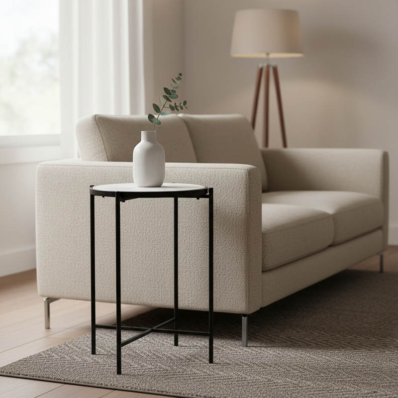 Βοηθητικό τραπεζάκι σαλονιού Luxere Inart μαύρο μέταλλο-λευκό μαρμάρου Φ40x65.5εκ
