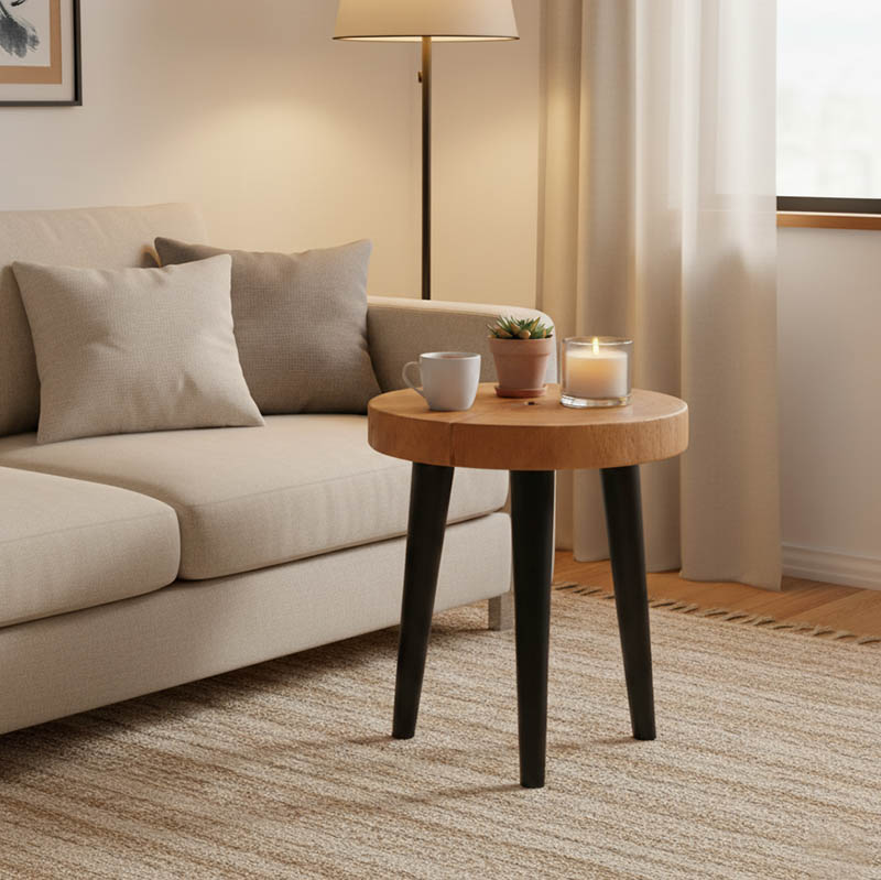 Βοηθητικό τραπέζι Labous pakoworld suar ξύλο σε φυσική-μαύρη απόχρωση Φ35x45εκ