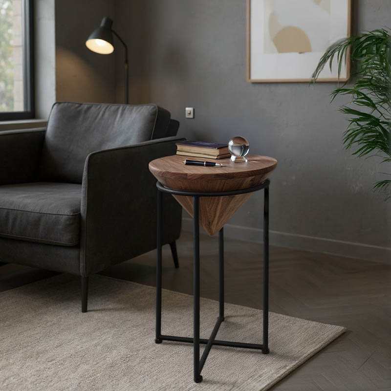 Βοηθητικό τραπέζι σαλονιού Miles I pakoworld μασίφ ξύλο ακακίας σε φυσική απόχρωση Φ31x53εκ