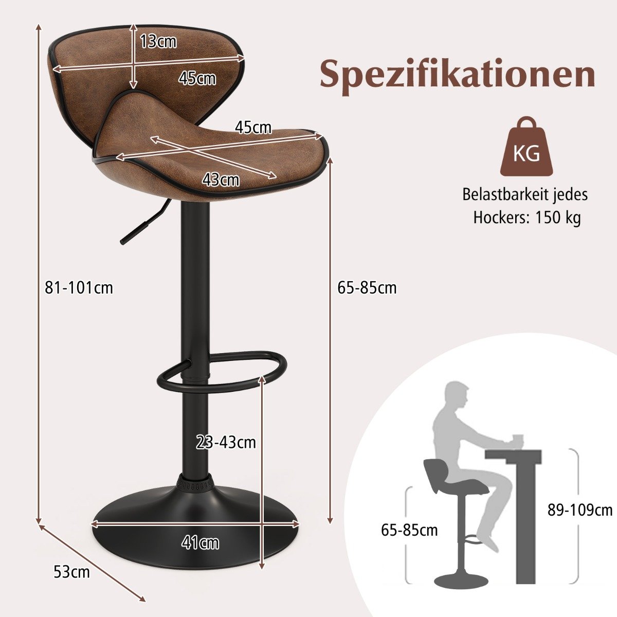 Χαρακτηριστικά:- Ρυθμιζόμενο σε ύψος περιστρεφόμενο σκαμπό μπαρ: Το σετ μας από 2 σκαμπό μπαρ μπορεί να ρυθμιστεί ελεύθερα σε ύψος (81-101 cm) για να ανταποκρίνεται σε διαφορετικά ύψη μπαρ. Τα σκαμπό επιτρέπουν περιστροφή 360°, ώστε να μπορείτε να γυρίσετε άνετα προς τους φίλους σας.