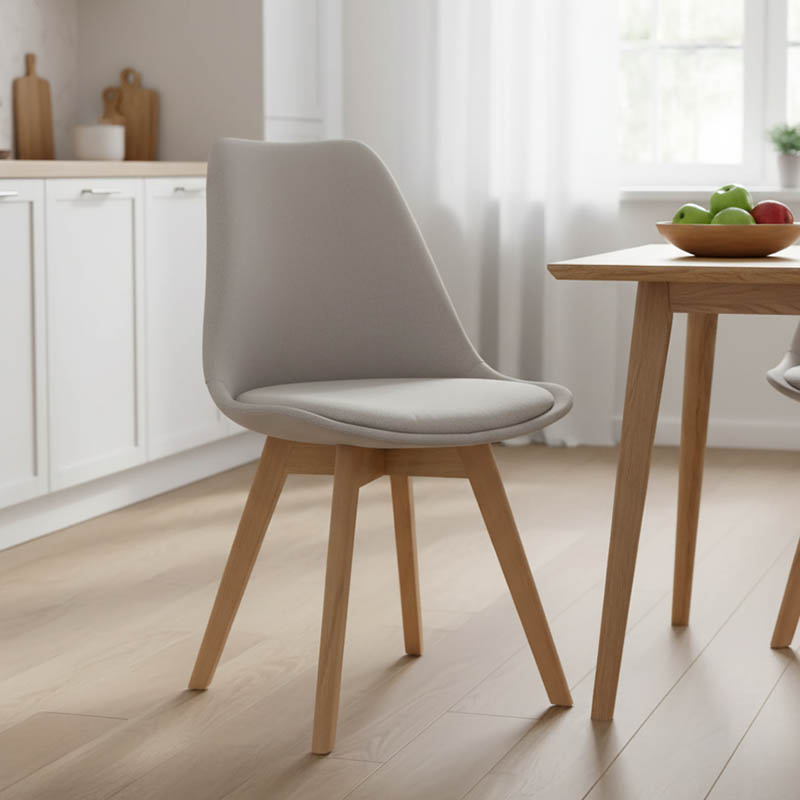Καρέκλα Gaston pakoworld μπεζ ύφασμα και ξύλινο πόδι σε φυσική απόχρωση 48x55x83εκ