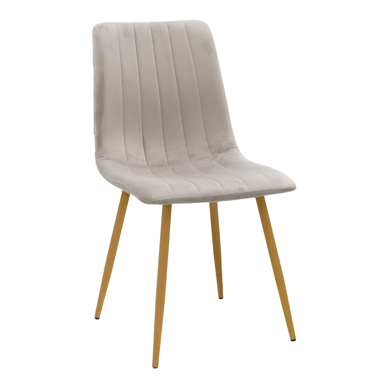 Καρέκλα Noor pakoworld βελούδο γκρι - πόδια σε φυσική απόχρωση 44x53x86εκ 4 τμχ