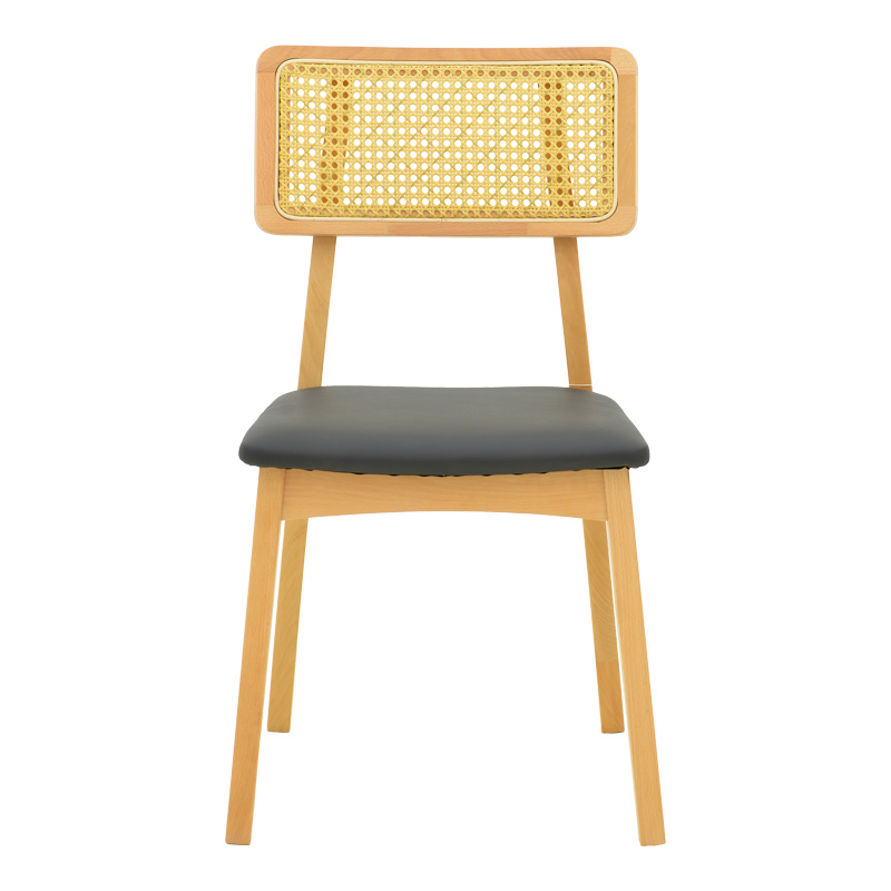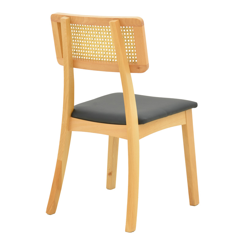 Καρέκλα Renna pakoworld ξύλο οξιάς σε φυσική απόχρωση με μαύρο pu μαξιλάρι 48x52x79εκ 2 τμχ