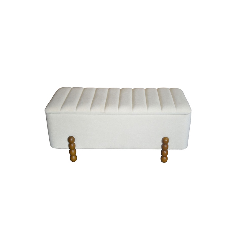 Σκαμπό μπαούλο Daph Inart σετ 2 τεμ βελούδο σε μπεζ και λευκή απόχρωση