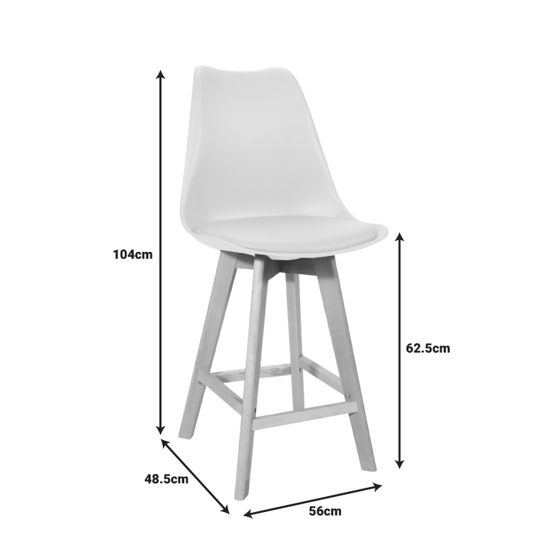 Σκαμπό μπαρ Gaston pakoworld λευκό pp-pu και ξύλινο πόδι σε φυσική απόχρωση 48.5x56x104εκ