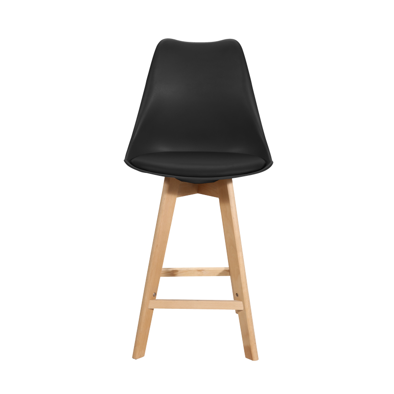 Σκαμπό μπαρ Gaston pakoworld μαύρο pp-pu και ξύλινο πόδι σε φυσική απόχρωση 48.5x56x104εκ