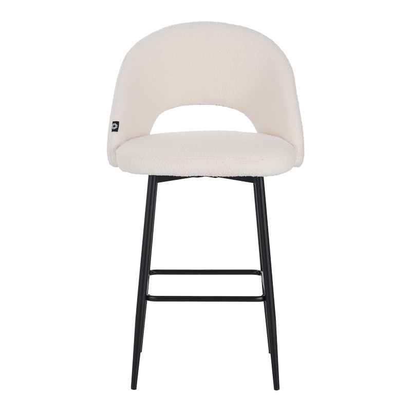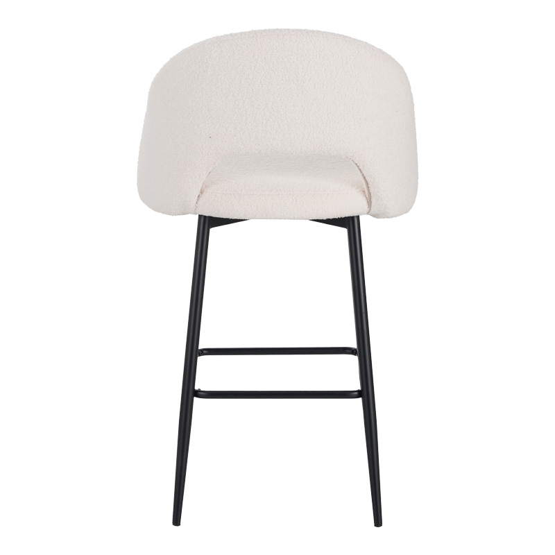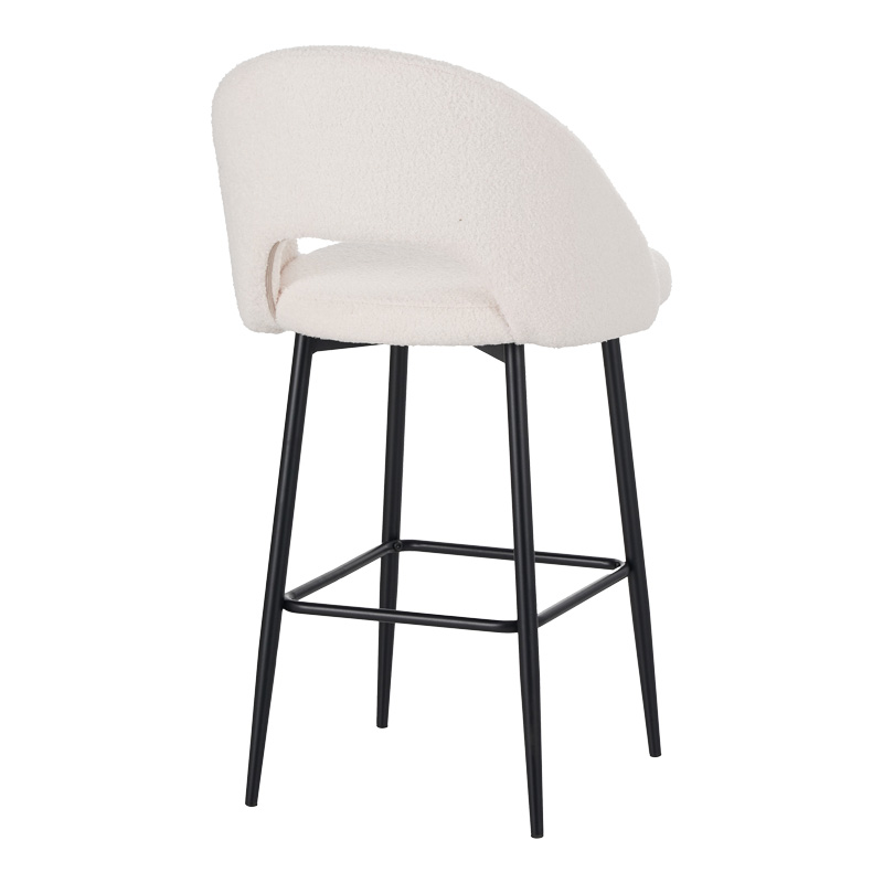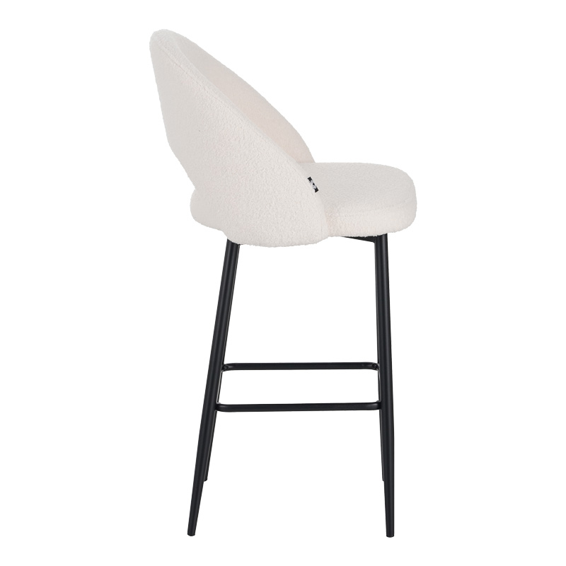 Σκαμπο μπαρ Masebo pakoworld μπουκλέ ύφασμα σε λευκή απόχρωση με μαύρα μεταλλικά πόδια 48x52x97εκ