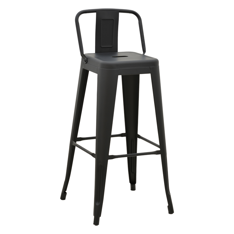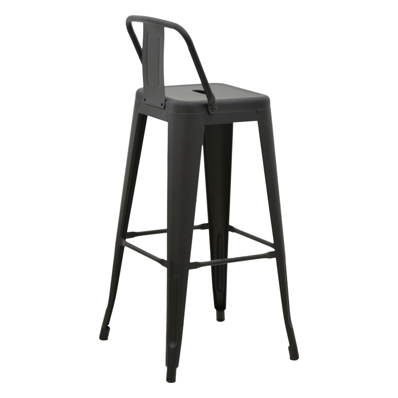 Σκαμπό μπαρ με πλάτη Utopia pakoworld μαύρο ματ μέταλλο 42x42x97εκ
