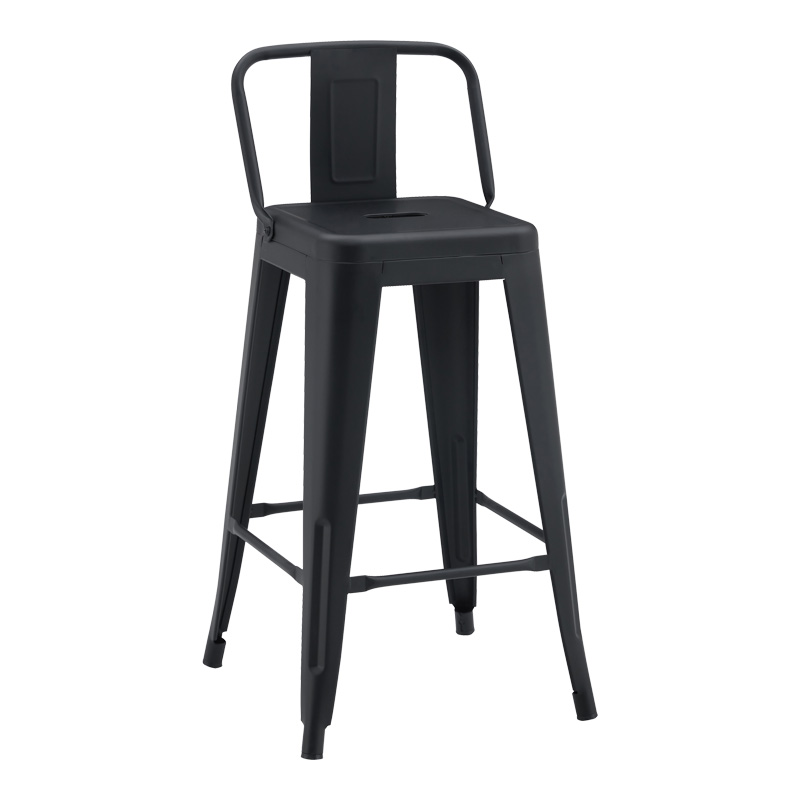 Σκαμπό μπαρ μεσαίου ύψους με πλάτη Utopia pakoworld σε μαύρο ματ μέταλλο 42x42x86εκ