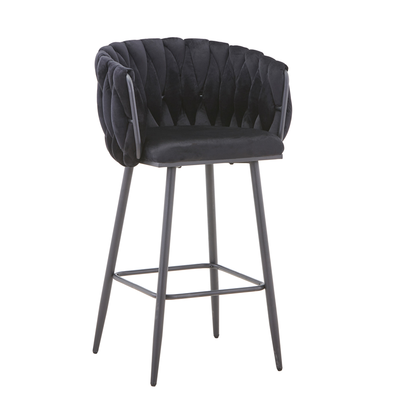 Σκαμπό μπαρ Vivian pakoworld μαύρο βελούδο-πόδι μαύρο μέταλλο 57x50x100εκ 2 τμχ
