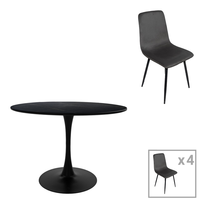 Τραπεζαρία Balou-Grato pakoworld σετ 5τεμ μαύρο Φ100x73εκ