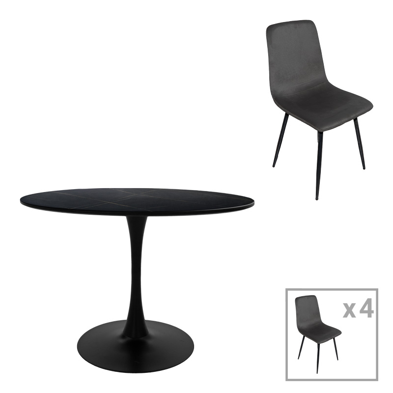 Τραπεζαρία Balou-Grato pakoworld σετ 5τεμ μαύρο Φ120x73εκ