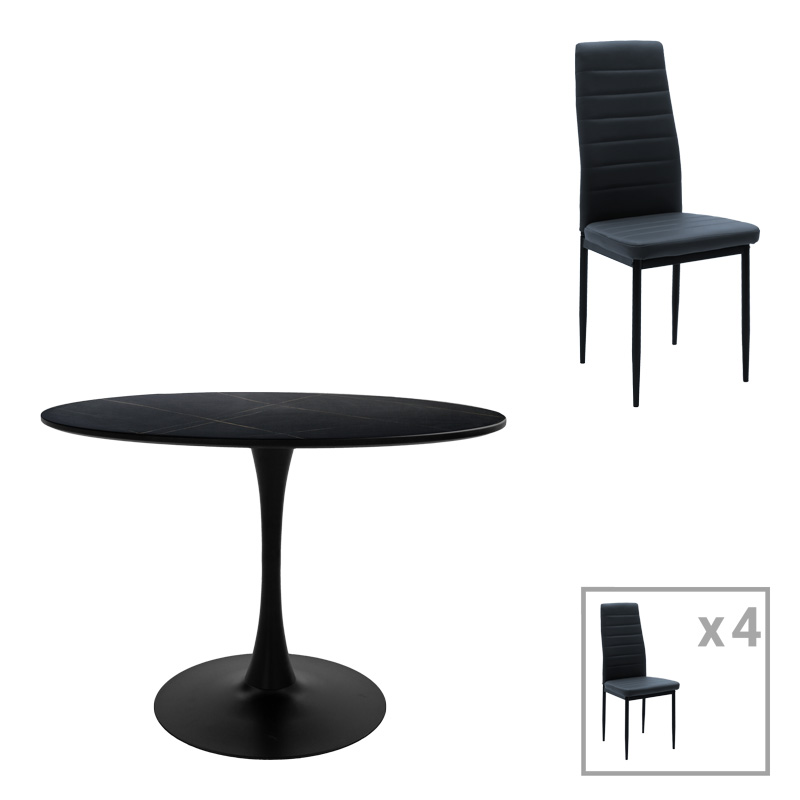 Τραπεζαρία Balou-Parker pakoworld σετ 5τεμ μαύρο-ανθρακί Φ120x73εκ