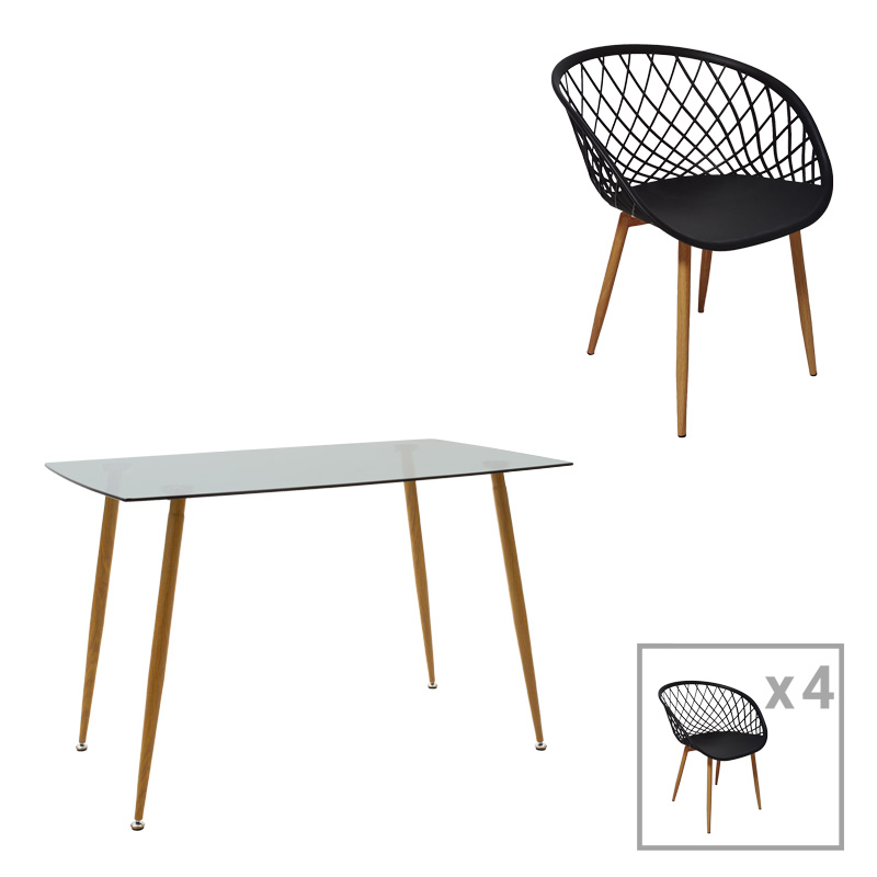 Τραπεζαρία Chloe-Ezra pakoworld σετ 5τεμ γυάλινο 8χιλ ανθρακί - πόδι φυσικό 120x70x75εκ