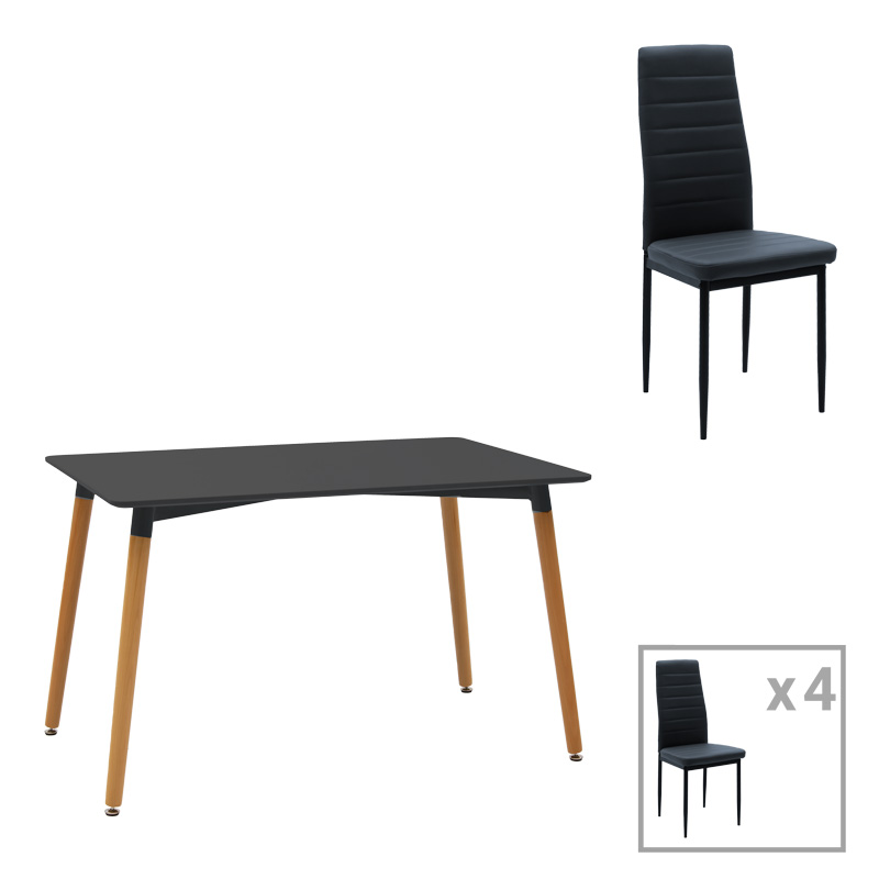 Τραπεζαρία Natali-Parker pakoworld σετ 5τεμ mdf σε μαύρη-φυσική απόχρωση 120x80x76cm