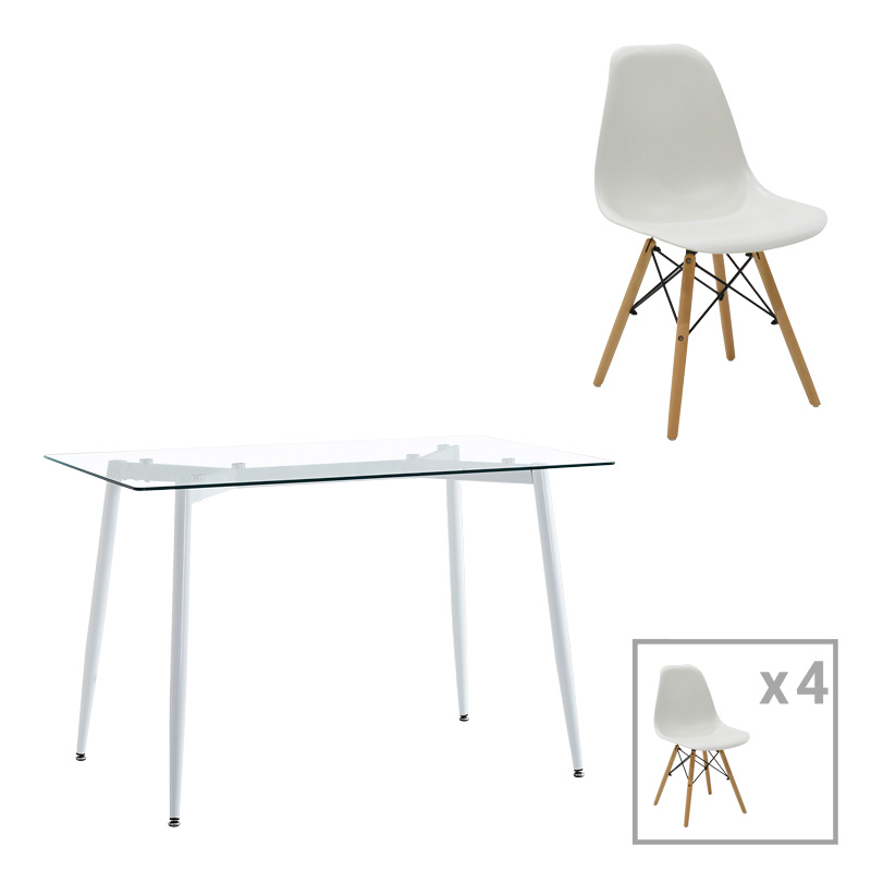 Τραπεζαρία Quana-Julita pakoworld σετ 5τεμ γυάλινο 8χιλ διάφανο - λευκό 120x70x75εκ