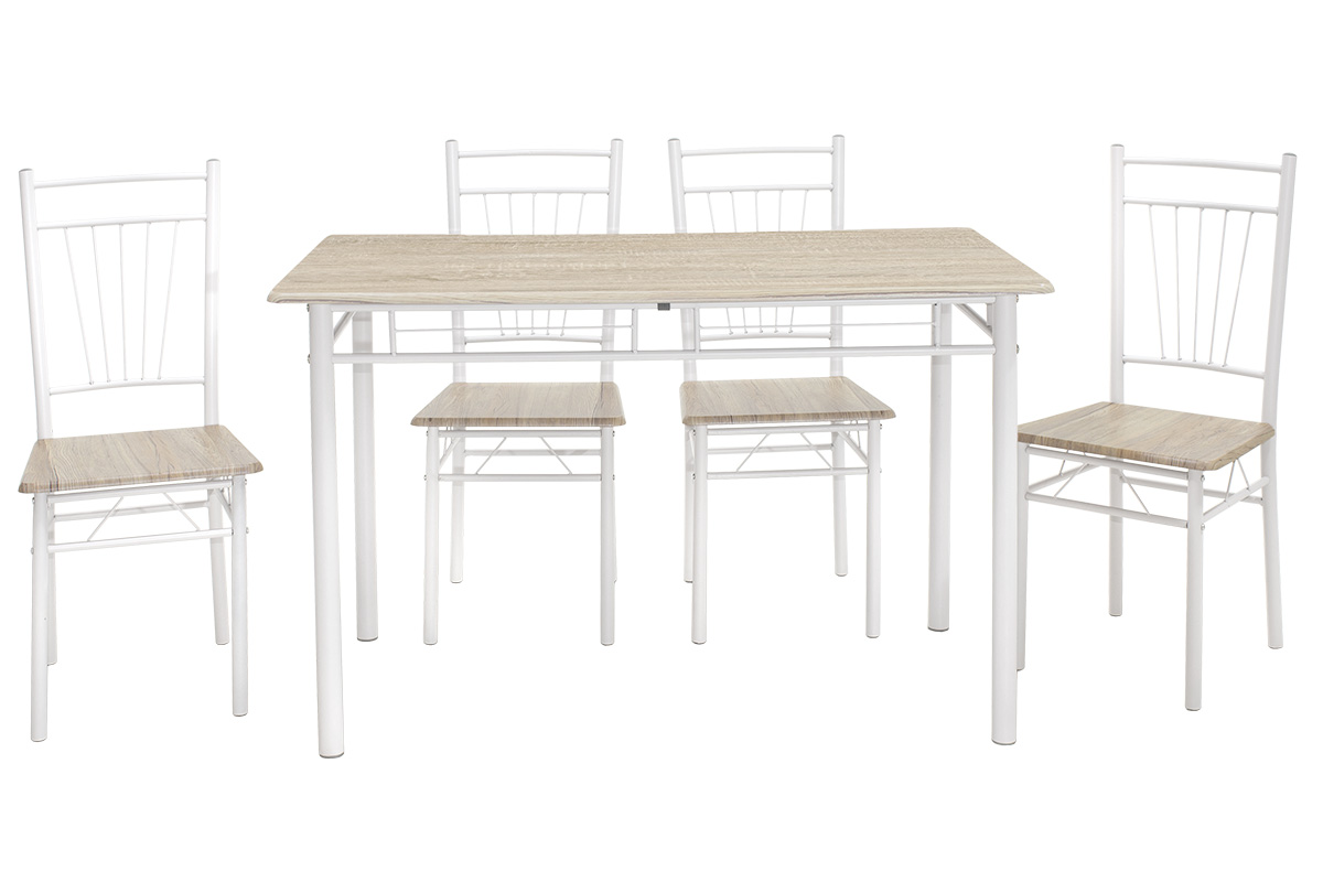 Tραπεζαρία Roza σετ 5τμχ χρώμα sonoma - πόδια λευκό gloss 120x70x75εκ