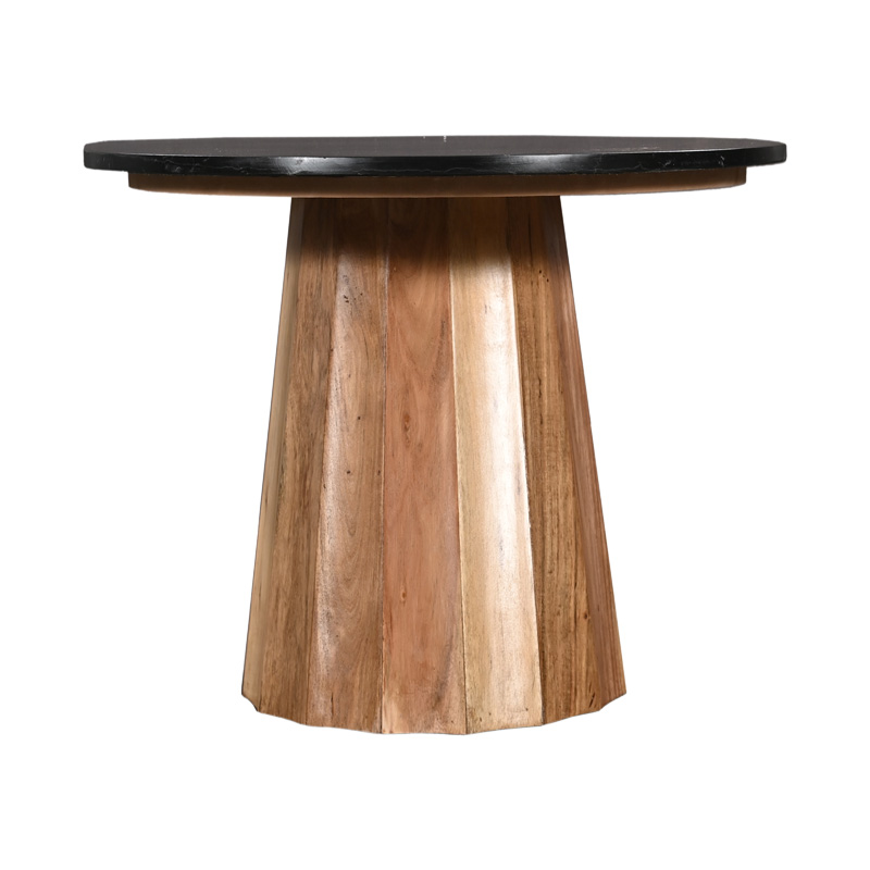 Τραπέζι Ezerdian pakoworld μασίφ ξύλο ακακίας σε φυσική απόχρωση με επιφάνεια μαύρου μαρμάρου Φ120x76εκ