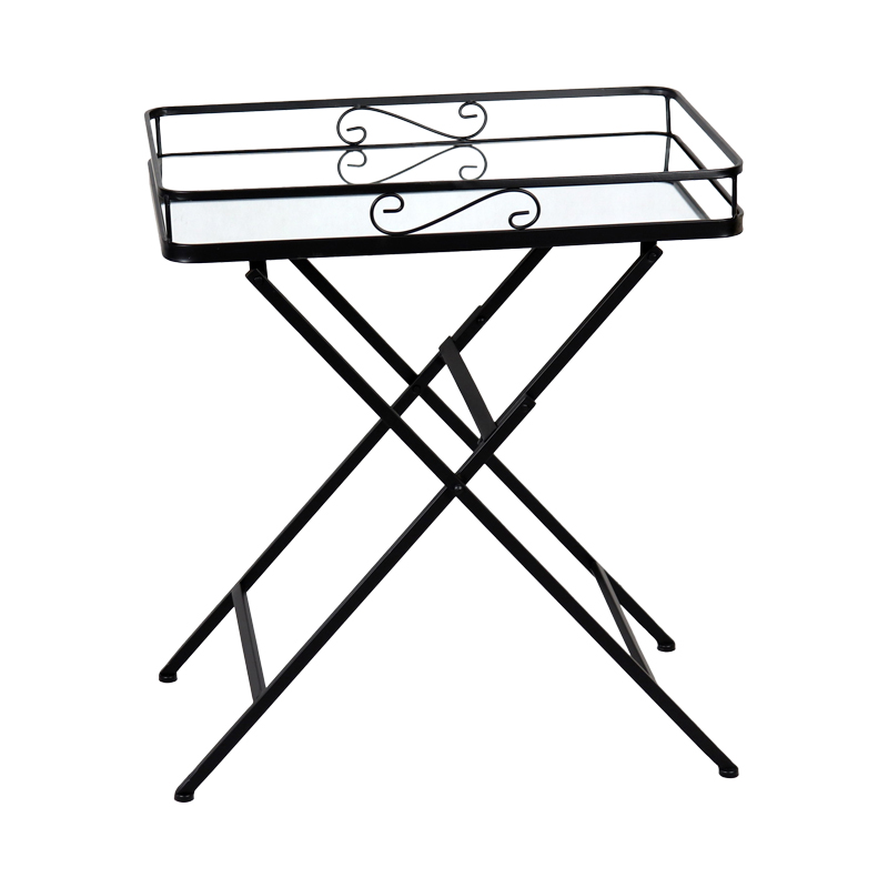Τραπέζι Joene Inart πτυσσόμενο μαύρο μέταλλο-γυαλί καθρέπτη 60x38x68εκ