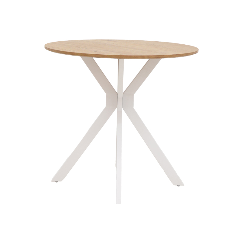Τραπέζι Xuson pakoworld φυσικό mdf-πόδι λευκό μέταλλο Φ80x75εκ