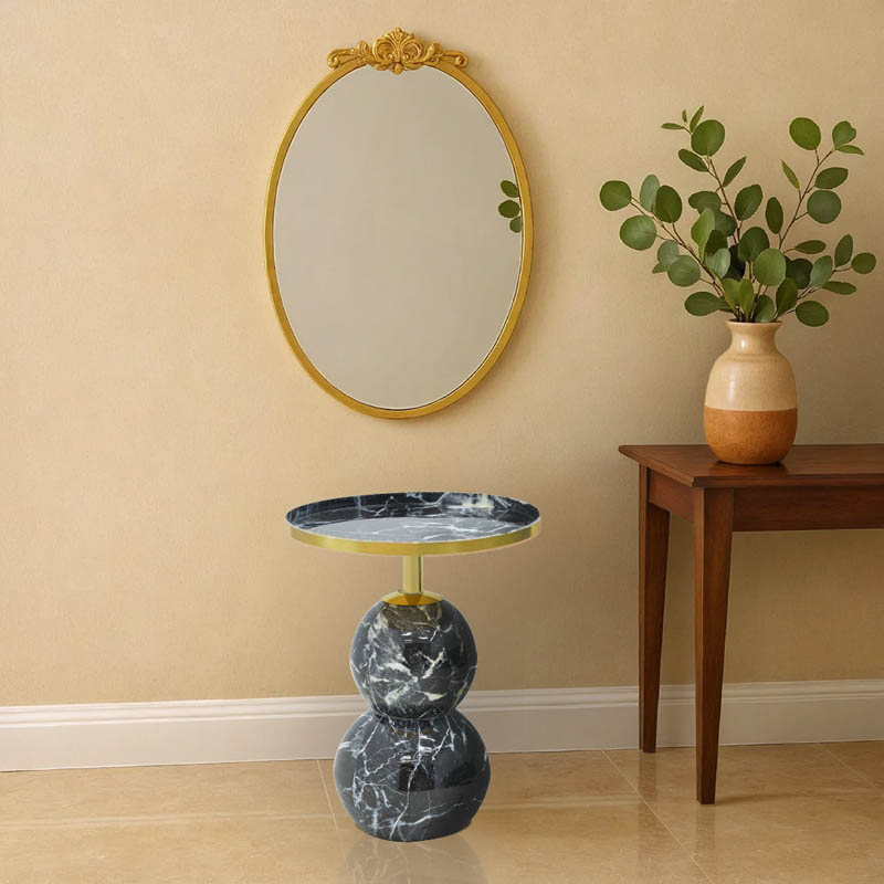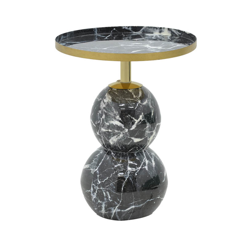 Βοηθητικό τραπέζι Dearest Inart μαυρο μαρμάρου-χρυσό μέταλλο Φ41x57εκ
