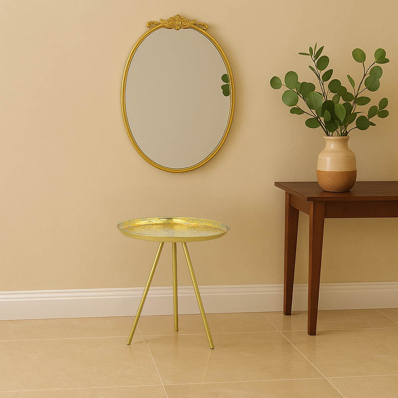 Βοηθητικό τραπέζι Jacksie Inart γκρι-χρυσό μέταλλο Φ41x43.5εκ