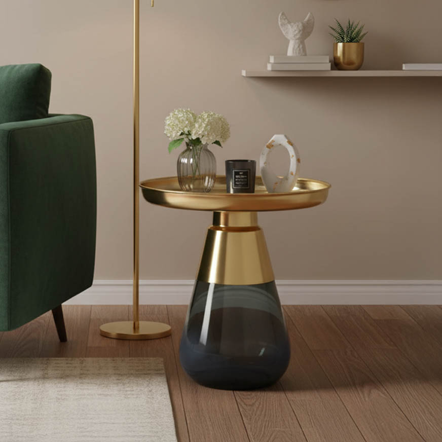 Βοηθητικό τραπέζι Kunlo Inart χρυσό χρώμιο-μαύρο γυαλί Φ50x53.5εκ