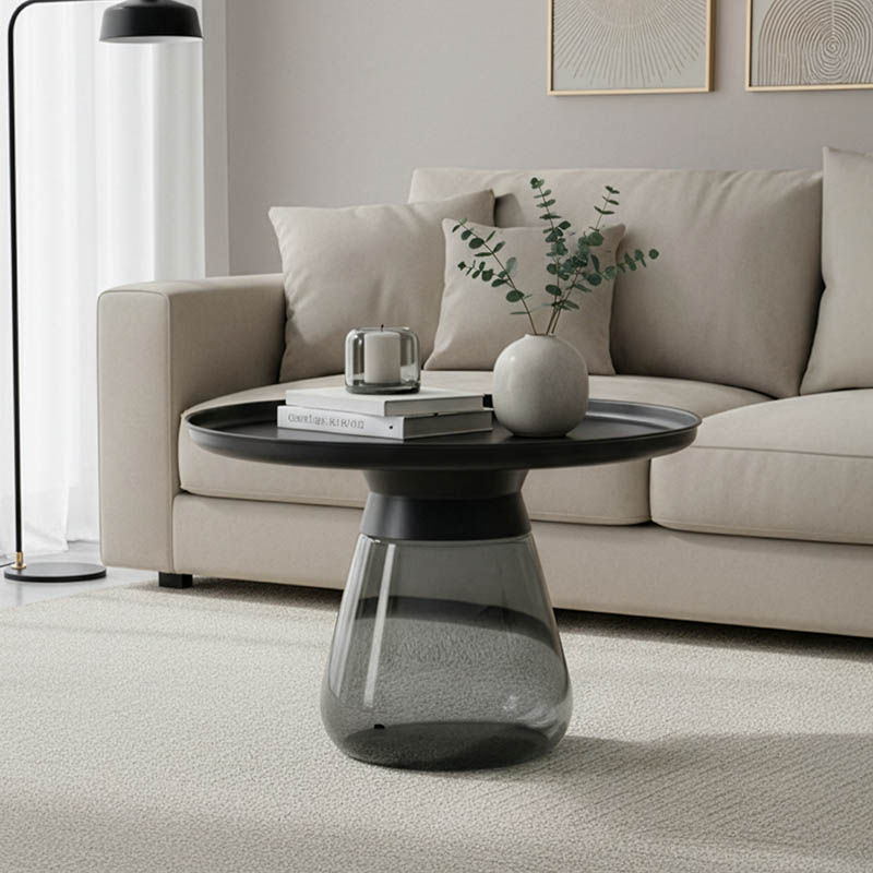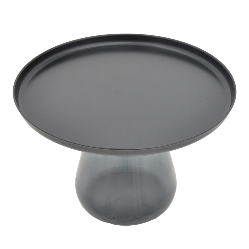 Βοηθητικό τραπέζι Kunlo Inart μαύρο μέταλλο-μαύρο γυαλί Φ60x42εκ