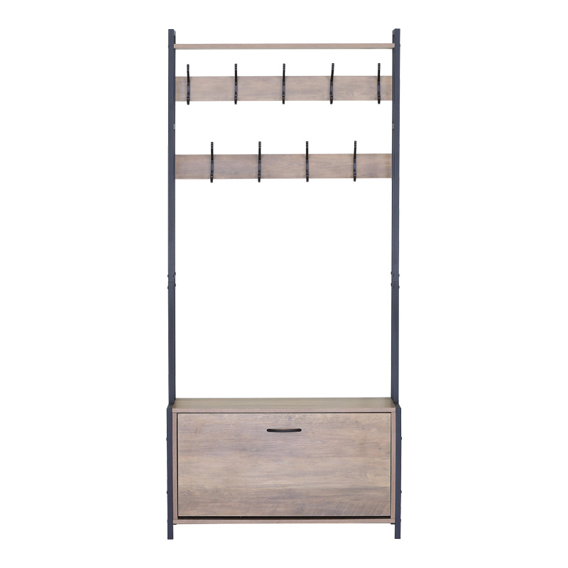 Το πολυλειτουργικό έπιπλο Ventoria είναι η ιδανική λύση για να διατηρήσετε την είσοδο, τον διάδρομο ή ακόμα και το υπνοδωμάτιό σας τακτοποιημένο και κομψό. Συνδυάζοντας κρεμάστρα ρούχων, παπουτσοθήκη και ένα πρακτικό παγκάκι, προσφέρει μέγιστη λειτουργικότητα σε έναν μοντέρνο βιομηχανικό σχεδιασμό.