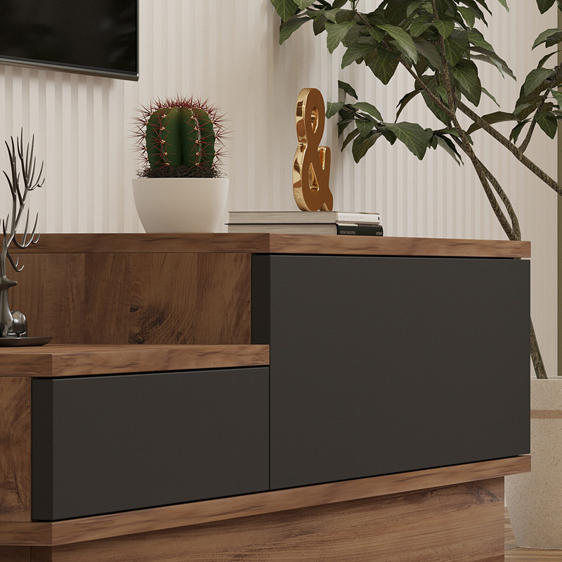 Έπιπλο τηλεόρασης Eclipse pakoworld σε sonoma-ανθρακί απόχρωση 160x35x35εκ
