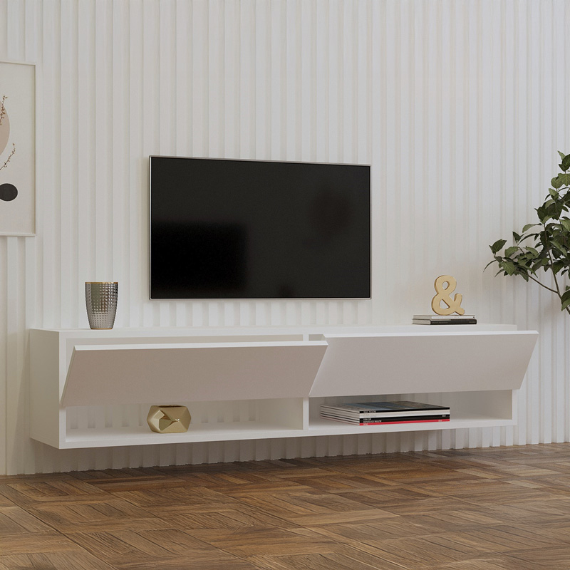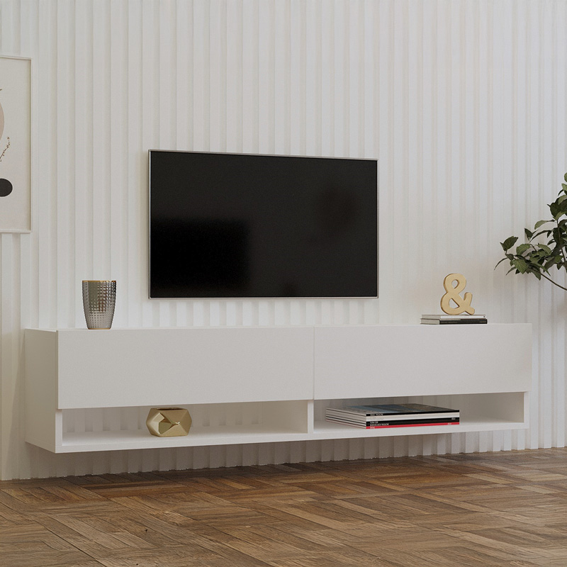 Έπιπλο τηλεόρασης επιτοίχιο Melosa pakoworld σε λευκή απόχρωση 141x30x31εκ