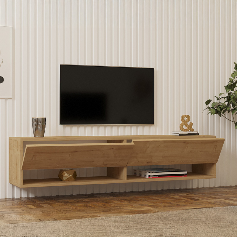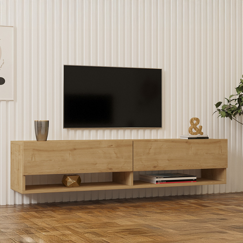Έπιπλο τηλεόρασης επιτοίχιο Melosa pakoworld σε oak απόχρωση 141x30x31εκ