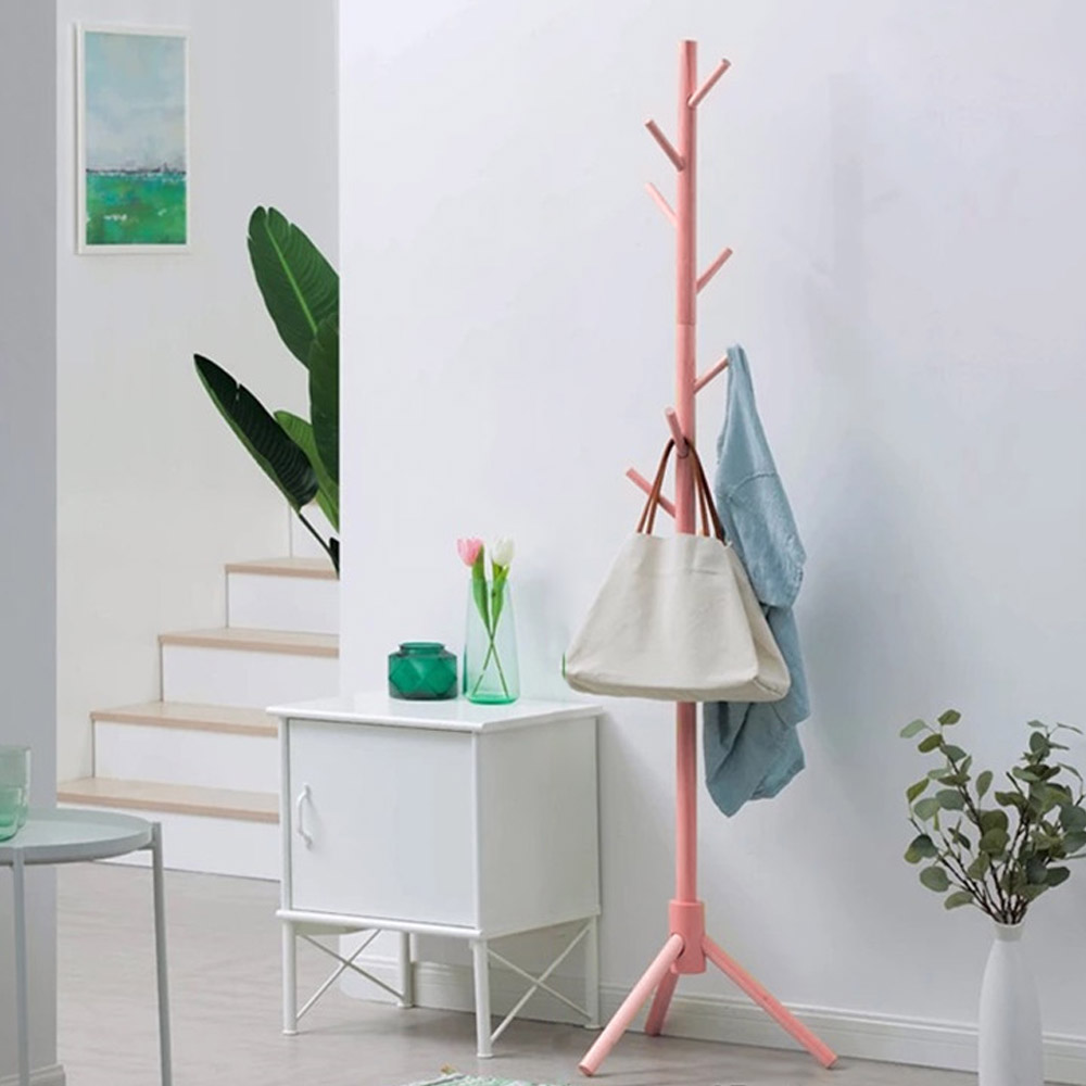 1 x Κρεμάστρα Δαπέδου από ξύλο σημύδας με 8 γάντζους Ροζ 41x41x176