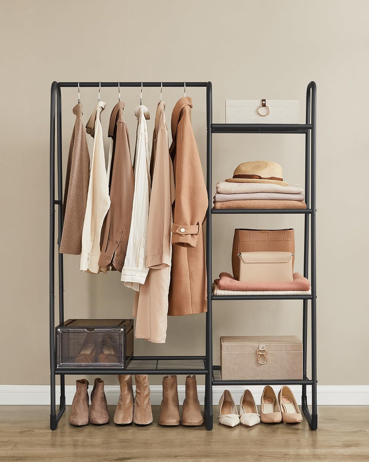 Μεταλλική Κρεμάστρα Ρούχων με Ράφια Αποθήκευσης 101,5x40x153,5cm – Μαύρο HSR138B01 Songmics