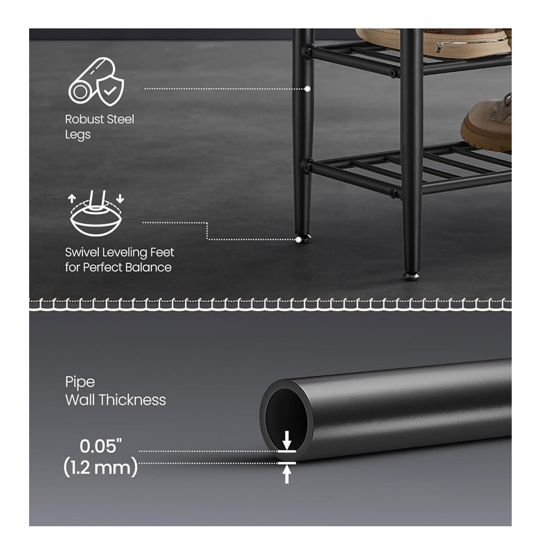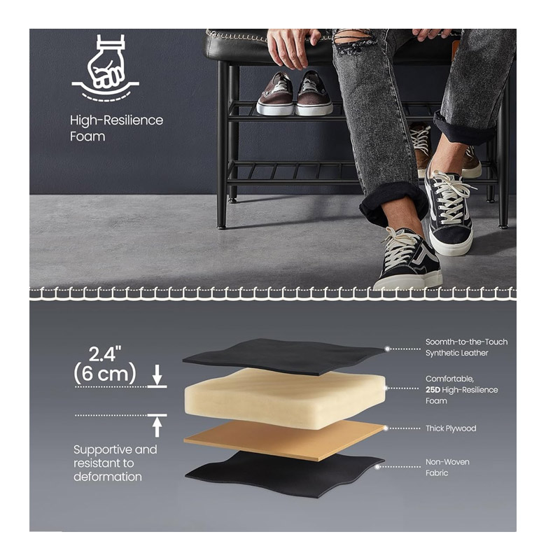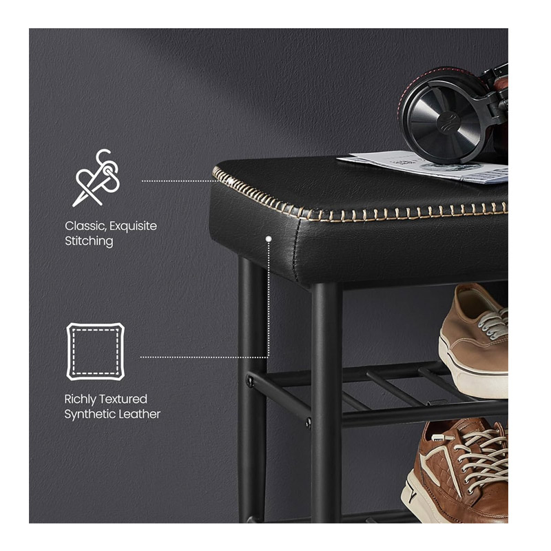 Η παπουτσοθήκη, από την εταιρία VASAGLE, διαθέτει στιβαρό ατσάλινο πλαίσιο, ρυθμιζόμενα πόδια και υποστηρίζει εύκολα έως και 135 Kg βάρος. Εξοπλισμένη με 2 ράφια για παπούτσια και κάθισμα από λείο τεχνητό δέρμα με σφουγγάρι 25D πάχους 8 cm.