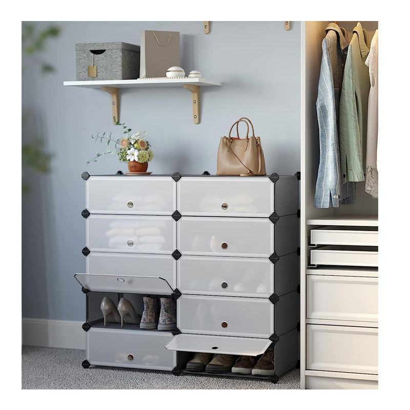 Πολυμορφική Πλαστική Παπουτσοθήκη με 10 Θήκες Χρώματος Γκρι Songmics LPC010G01