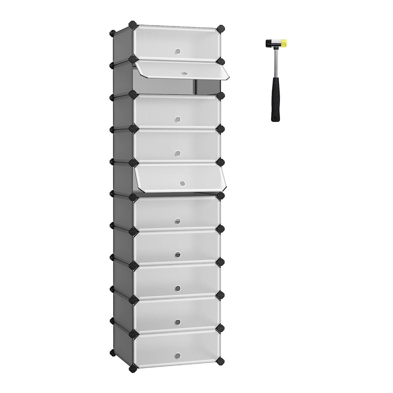 Η παπουτσοθήκη, από την εταιρία Songmics, διαθέτει 10 θήκες και μπορεί να χωρέσει 20-30 ζευγάρια παπούτσια (ψηλοτάκουνα, αθλητικά παπούτσια και παιδικά). Με ποιοτικούς συνδέσμους ABS, στιβαρό μεταλλικό σκελετό και αδιάβροχα πλαστικά φύλλα PP που καθαρίζονται εύκολα. Το σχήμα της μπορεί να προσαρμοστεί για να καλύψει κάθε ανάγκη σας.