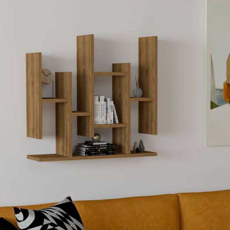 Ραφιέρα τοίχου Bemba pakoworld σε καρυδί απόχρωση 70x19,6x68,8εκ
